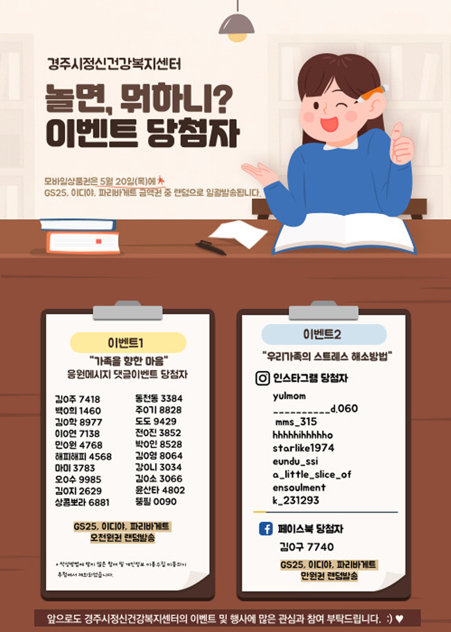 2021년 아동청소년 마음건강캠페인 수고 했삼(3), 수고 하삼(3) 이벤트 당첨자 결과 안내